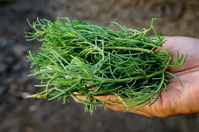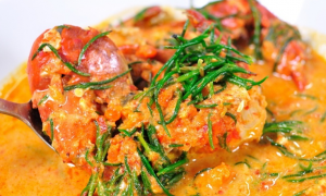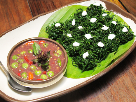 ใบชะครามลวกกะทิ                                                                      แกงคั่วปูไข่ใบชะคราม