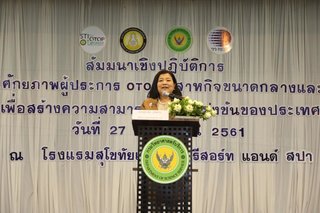 27 พฤศจิกายน 2561 – นางอุมาพร สุขม่วง อธิบดีกรมวิทยาศาสตร์บริการ กระทรวงวิทยาศาสตร์และเทคโนโลยี เป็นประธานเปิดงานสัมมนาเชิงปฏิบัติการ เรื่อง “การส่งเสริมศักยภาพผู้ประกอบการ OTOP วิสาหกิจขนาดกลางและขนาดย่อม วิสาหกิจชุมชน เพื่อสร้างความสามารถในการแข่งขันของประเทศ” โดยมีนางสาวลดา พันธ์สุขุมธนา ผู้อำนวยการสำนักหอสมุดและศูนย์สารสนเทศวิทยาศาสตร์และเทคโนโลยี กล่าวรายงานการจัดงาน และนายสุชาติ ทีคะสุข รองผู้ว่าราชการจังหวัดสุโขทัย ให้เกียรติกล่าวต้อนรับ โดยมีผู้ประกอบการ OTOP เข้าสัมมนา จากจังหวัดสุโขทัย แพร่ อุตรดิตถ์ พิษณุโลก ลำปาง กำแพงเพชร และตาก และหน่วยงานที่เกี่ยวข้อง ประมาณ 450 คน ณ โรงแรมสุโขทัย เทรเชอร์ รีสอร์ท แอนด์ สปา อำเภอเมือง จังหวัดสุโขทัย